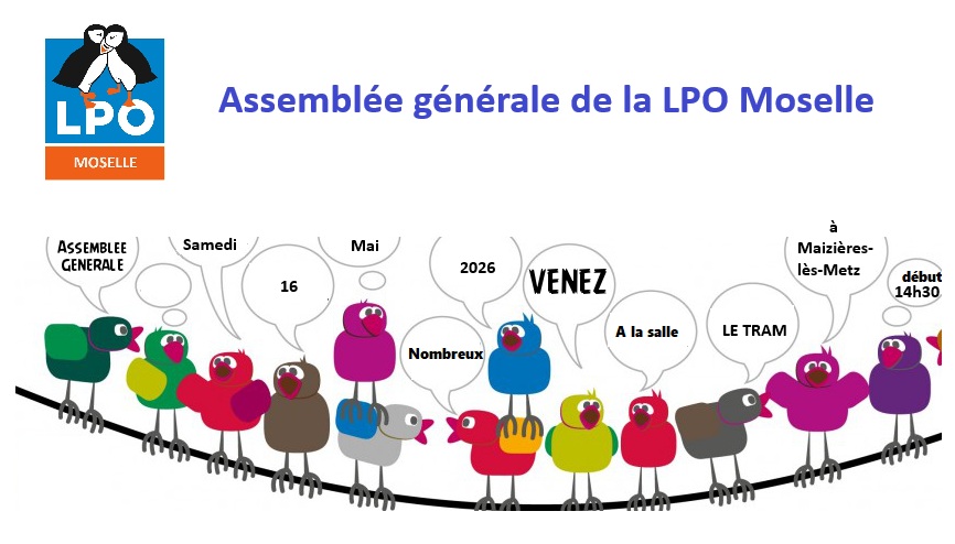 L'Assemblée générale annuelle de la LPO Moselle se tiendra le 16 mai 2026 à 14h30 à la salle LE TRAM à MAIZIERES-LES-METZ (1 avenue Marguerite Duras)